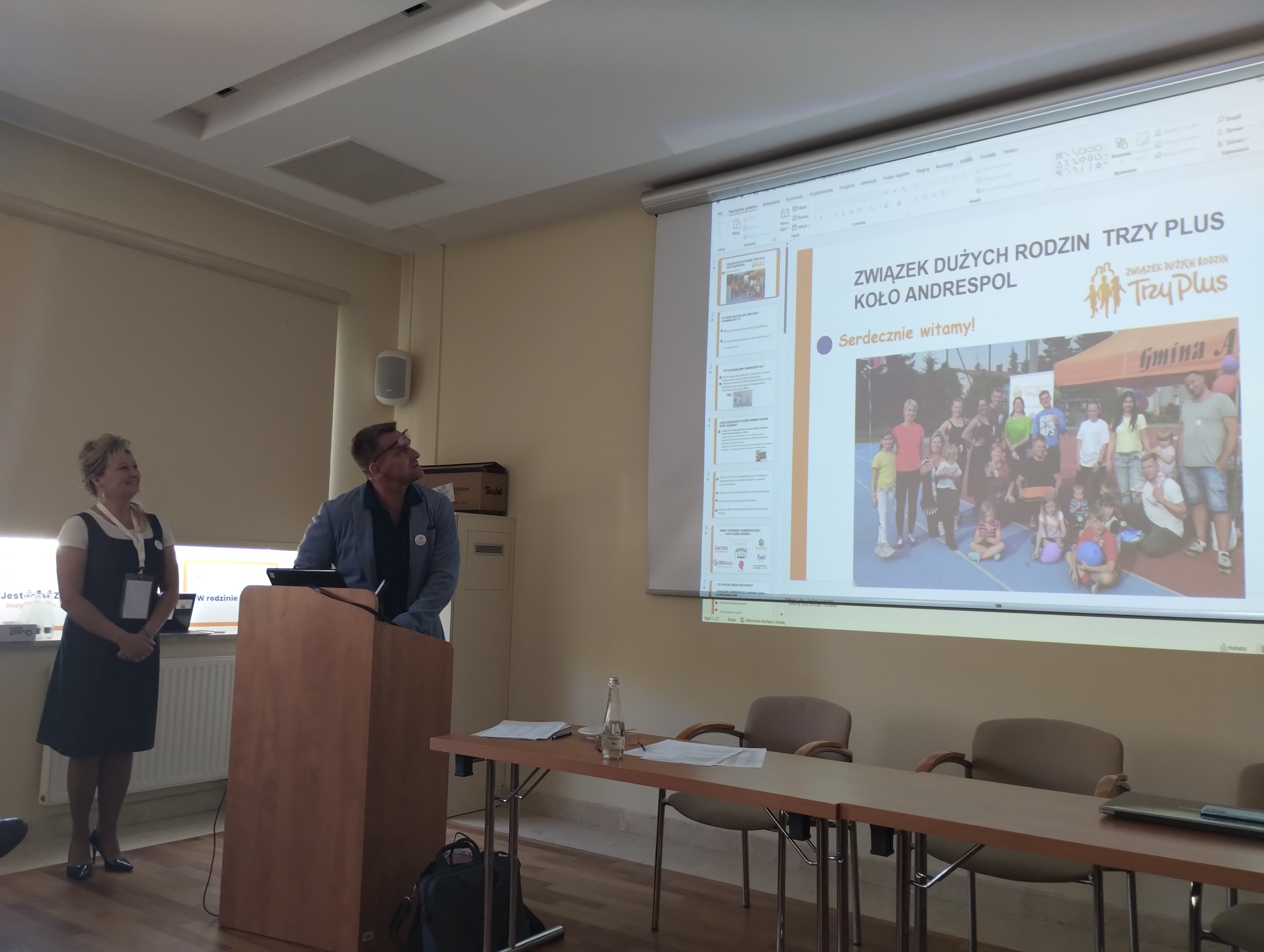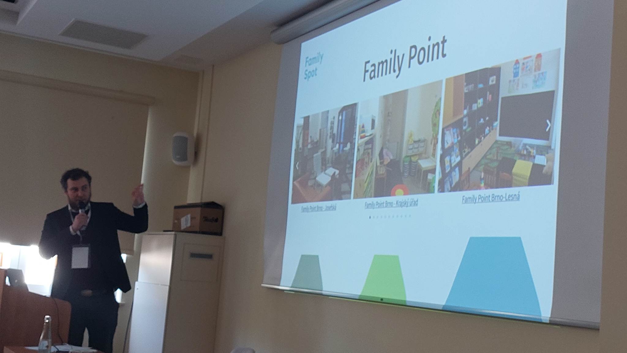 Karol Grabiec, Dyrektor Zarządzający, z ogromną pasją i zaangażowaniem przedstawił projekt Family Spot. W założeniach jest to miejsce otwarte dla mieszkańców gminy, dedykowane całej rodzinie. Będą tam prowadzone działania animujące i integrujące lokalną społeczność rodzin, będą prowadzone warsztaty rozwijające kompetencje rodzicielskie, wychowawcze, związane z konkretnymi dziedzinami, połączone z animacją czasu dla dzieci. Będą to miejsca, w których lokalne grupy inicjatywne (grupy nieformalne, stowarzyszenia) będą mogły skorzystać z infrastruktury i prowadzić zajęcia otwarte dla innych. Projekt ten spotkał się z ogromnym zainteresowaniem uczestników, padło mnóstwo pytań i inspirujących odpowiedzi.