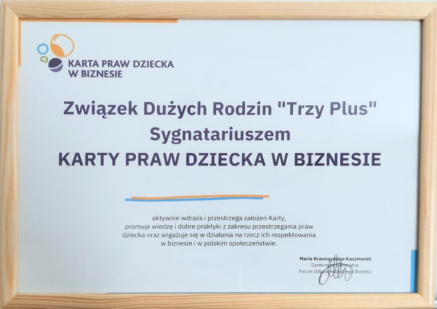 Wczoraj uczestniczyliśmy w wyjątkowym wydarzeniu, w trakcie którego Związek Dużych Rodzin Trzy Plus podpisał Kartę Praw Dziecka w Biznesie.