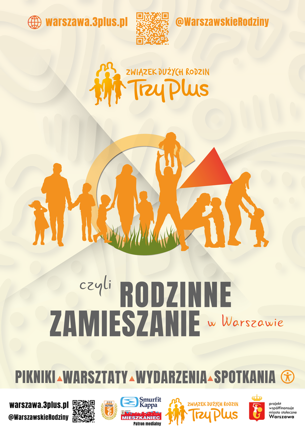 Związek Dużych Rodzin Trzy Plus zaprasza warszawskie rodziny do udziału w nowym projekcie „Wspólne godziny dla rodziny”, który jest współfinansowany przez Miasto Stołeczne Warszawa. Projekt ten ma na celu organizowanie różnorodnych wydarzeń dla rodzin w przestrzeni publicznej, aby promować spędzanie czasu razem, budowanie relacji i zdrowy, aktywny styl życia. W ramach projektu zaplanowanych jest łącznie 57 wydarzeń w Warszawie.