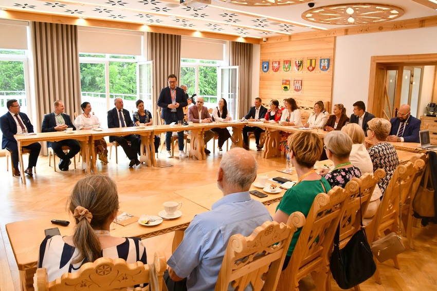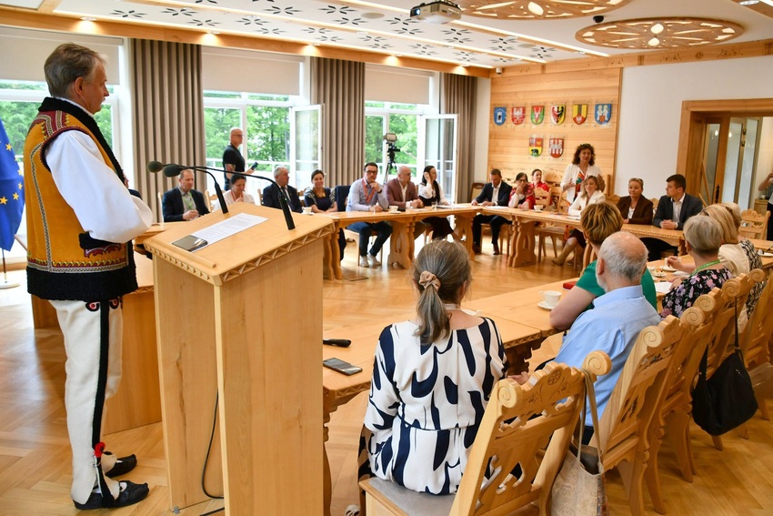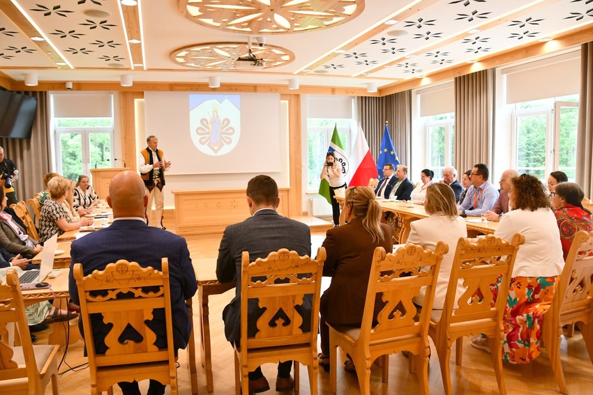 Starostwo Powiatu Tatrzańskiego – gospodarz spotkania, Starosta Andrzej Skupień oraz Sekretarz Powiatu Helena Buńda oraz Kierownik Biura Komunikacji Anna Karpień-Semberecka